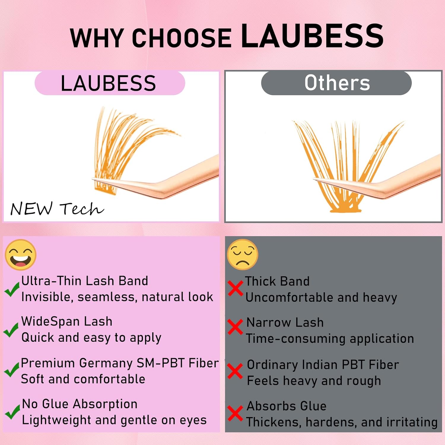 - Zero Weight: LAUBESS color lash clusters is made of ultra-light PBT material, softer than ordinary cluster lashes, comfortable to wear without stress.