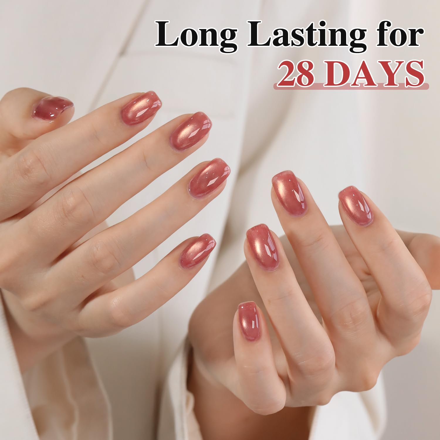 Double Rhythm 0.5 OZ Cat Eye Gel Polish with Magnet 15ML Holographic Glitter Shimmer Translucent Jelly Color Magnetic Nail Polish Salon DIY at Home (Cinnamon Pink-MC1269)