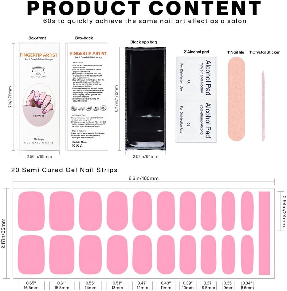 - 4 Salon-Gloss Finish Over Designs: Unlike regular stickers, curing transforms patterns into true gel manicures. Your Semi Cured Gel Nail Stripsget a diamond-like shine that protects the design!