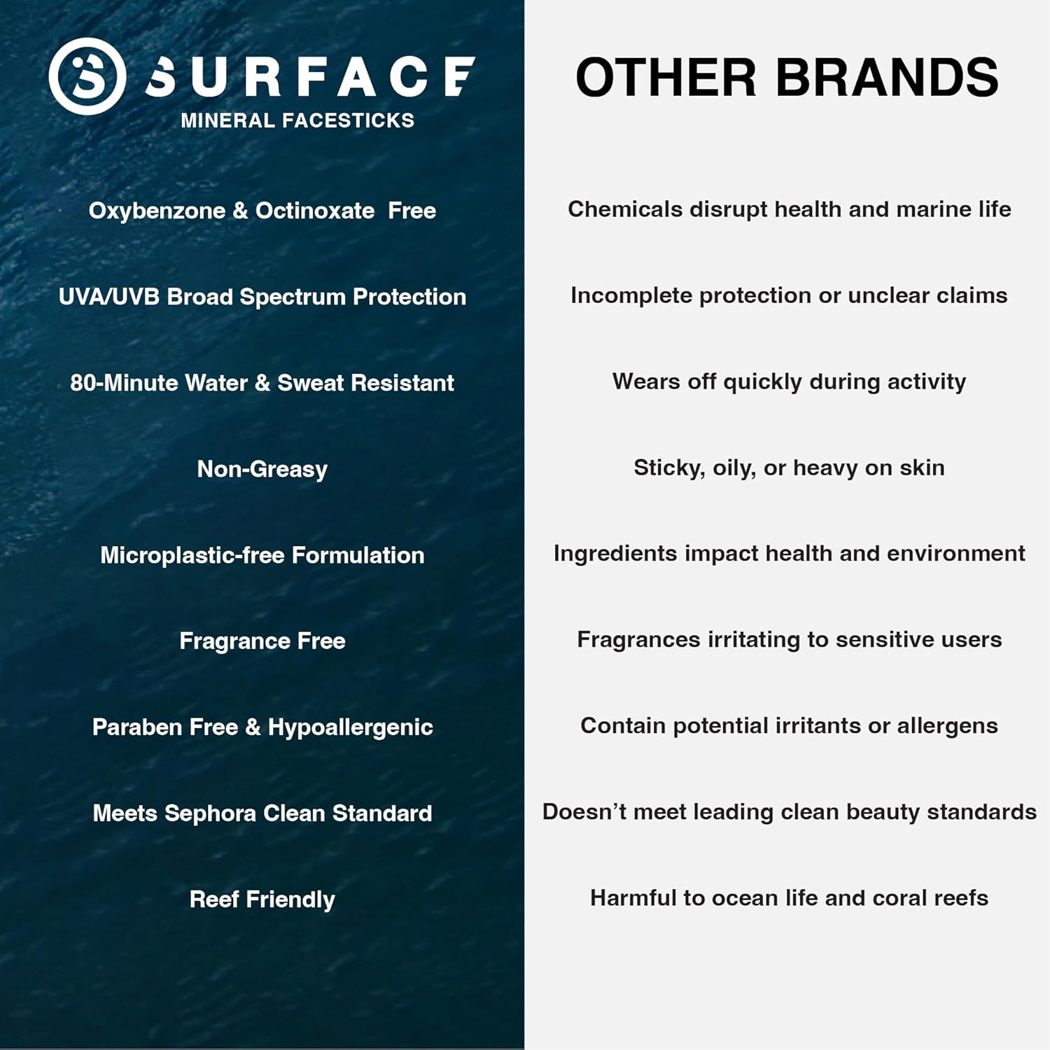 Surface Mineral Sunscreen Face Stick SPF 60, Lightweight Non-Nano Zinc Oxide Formula, Reef Friendly, Broad Spectrum UVA UVB Protection, Water Resistant Sun Care for 80 Minutes, Tinted, 0.5oz