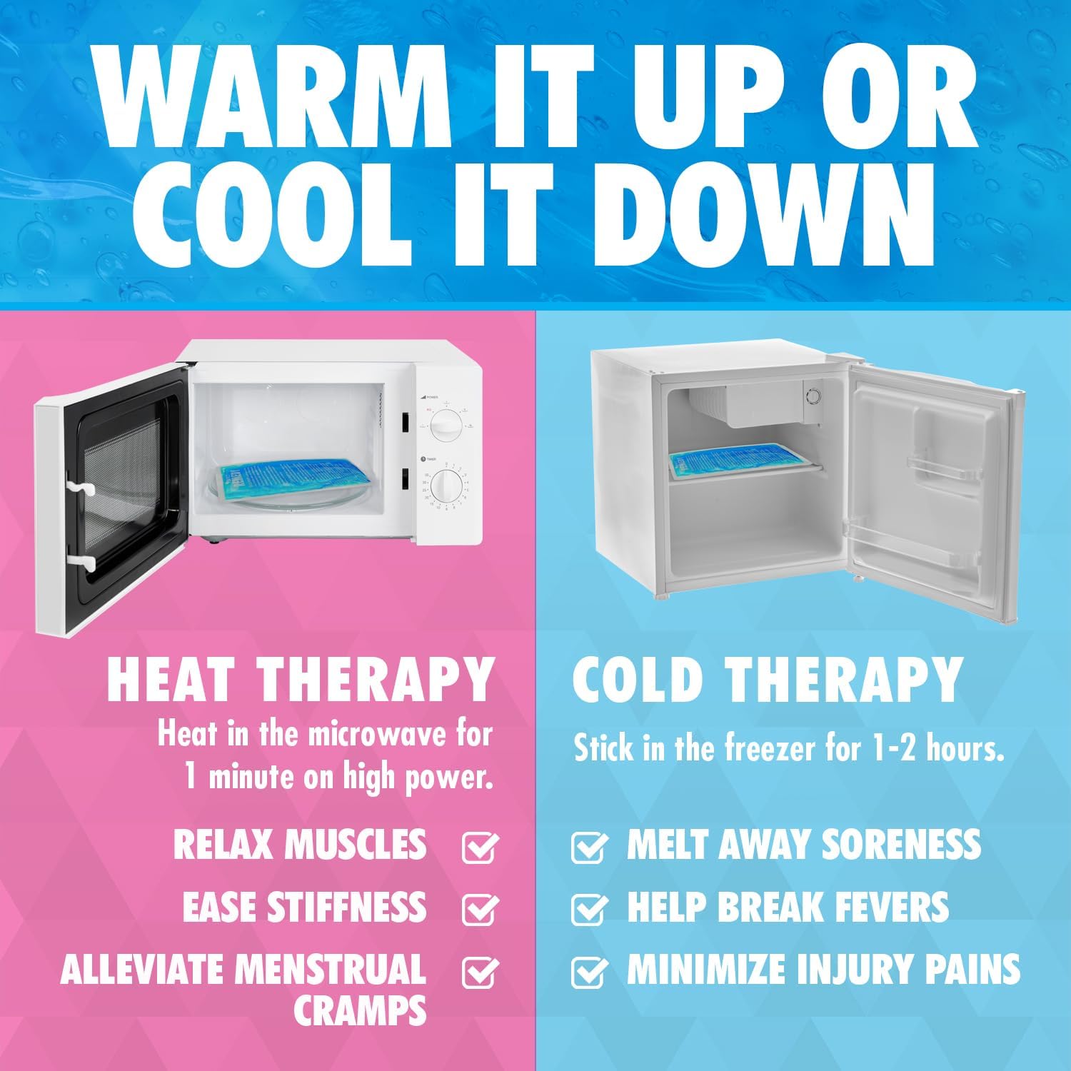 - FOR COLD OR WARM COMPRESS: Struggling with cramps or a stomach ache? Our soft ice pack for back and body helps provide a soothing heat therapy. You can count on our cold and hot pack for pain relief whenever and wherever you need it.