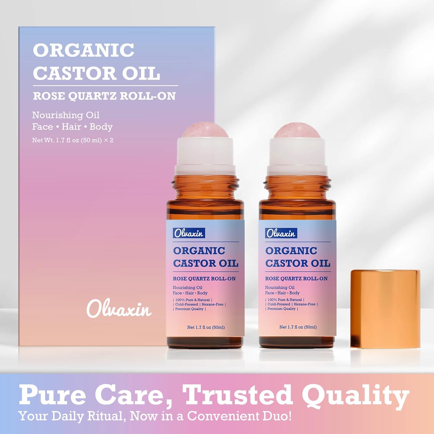 - 【Organic Castor Oil – 2 Pack】 Pure, cold-pressed castor oil in convenient roll-on bottles for daily moisturizing and conditioning. 2 × 1.7 fl oz (50 mL); Total 3.4 fl oz (100 mL).